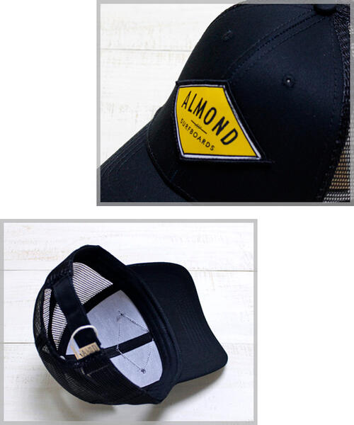 Almond Surfboards Designs Decades Mesh Cap trucker newhattan / Black アーモンド サーフ メッシュ キャップ / トラッカー ロゴ パッチ ブラック 黒 almond surf westcoast beach