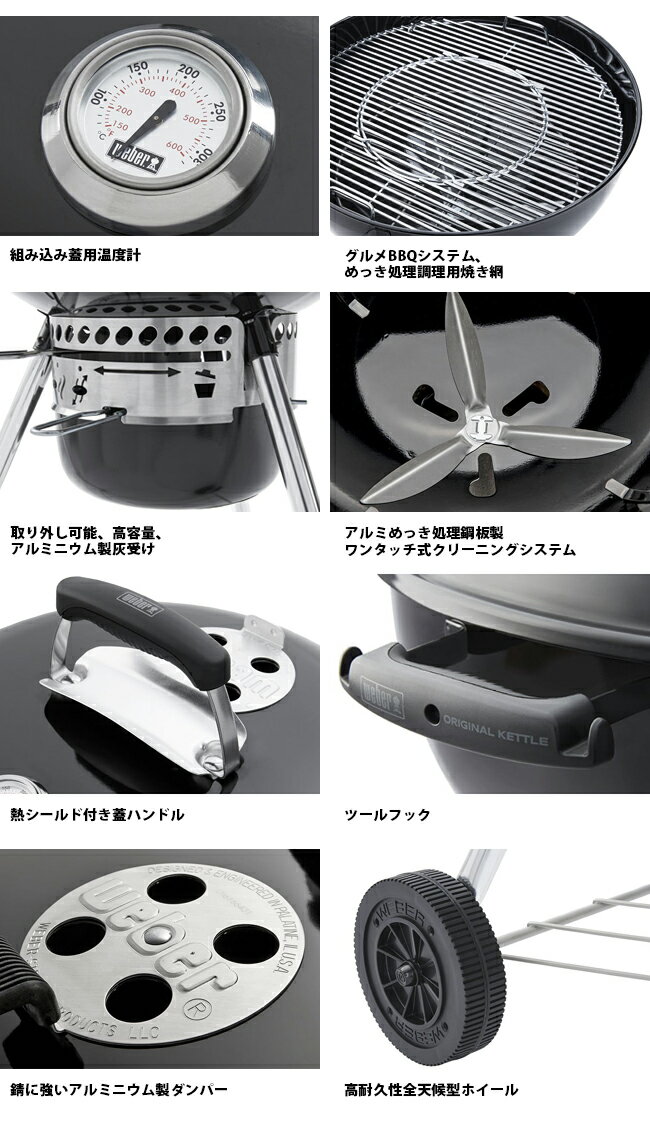 特徴・グルメBBQシステム、めっき処理調理用焼き網・高耐久性スチール製チャコール焼き網・ホーローコーティングボウルと蓋・組み込み蓋用温度計・底部ワイヤーラック・熱シールド付き蓋ハンドル・グリル蓋内角度付き蓋用フック・取り外し可能、高容量、アルミニウム製灰受け・アルミめっき処理鋼板製ワンタッチ式クリーニングシステム・スプリングクリップ/プッシュピン脚アセンブリ燃料タイプ チャコール ※モニタやPC環境等により実物と多少色合いが異なって見える場合もございます。