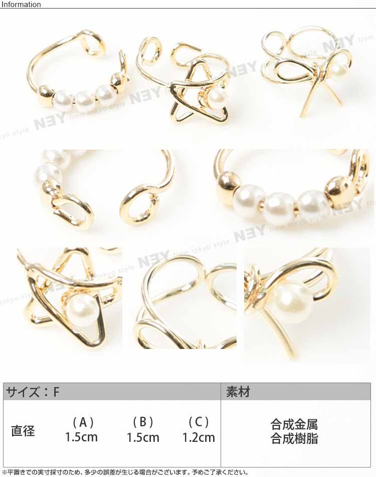 サイズ:F(フリーサイズ) 直径: (A)1.5cm (b)1.5cm (C)1.2cmピアスホールが開いていない方も 簡単に装着できる♪