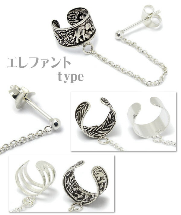 - 【201702BUP】,アクセサリー,原宿,ファッション,パーツ,シルバー925,SILVER925,silver925,シルバーアクセサリー,シルバーピアス,イヤーカフ,イヤカフ,イヤカフピアス,シンプル,メタル,メタリック,チェーン,リーフ,葉,はっぱ,葉っぱ,ライン,ぞう,ゾウ,象,エレファント,エスニック,