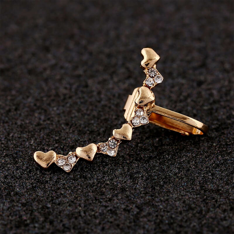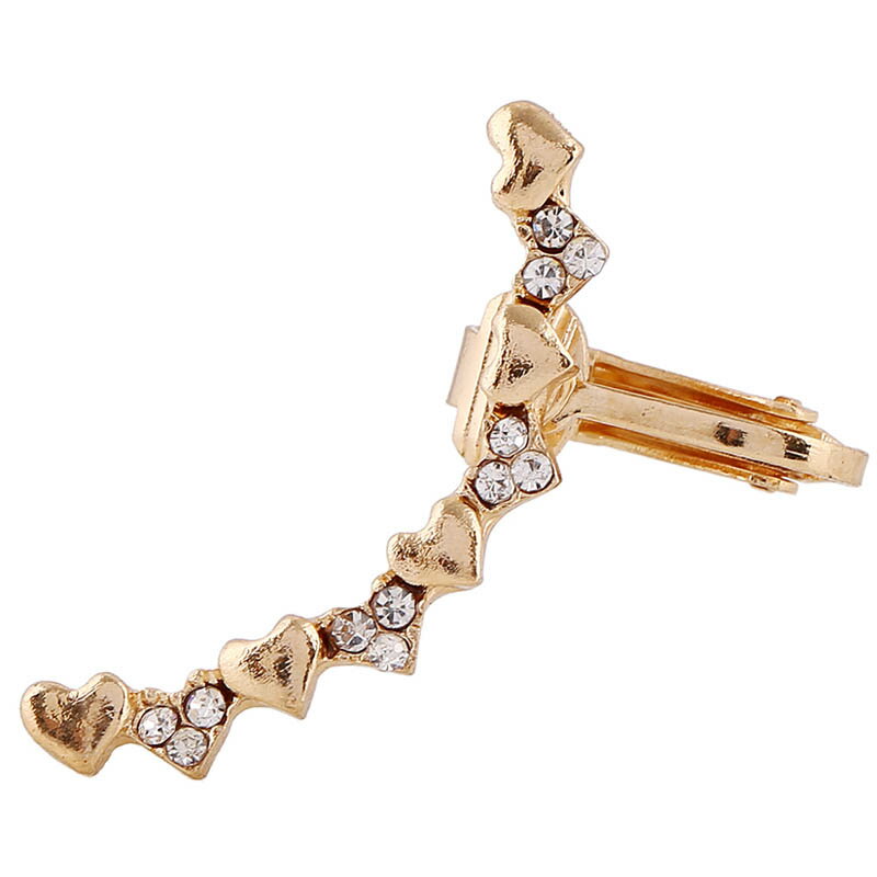 耳の側面を沿うようにデザインされた存在感のあるイヤーカフは結婚式やパーティ、入学式などフォーマルなスタイルにもぴったり!高級感のあるゴールドメッキ。