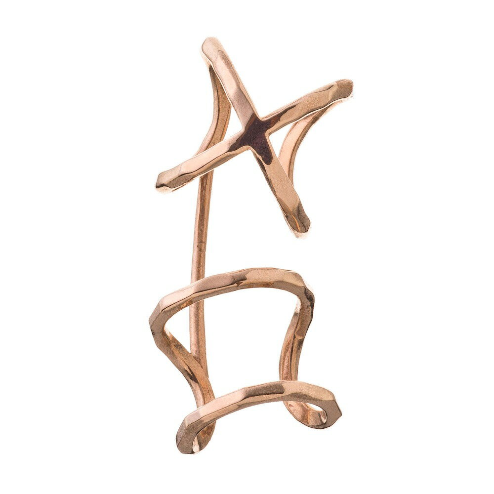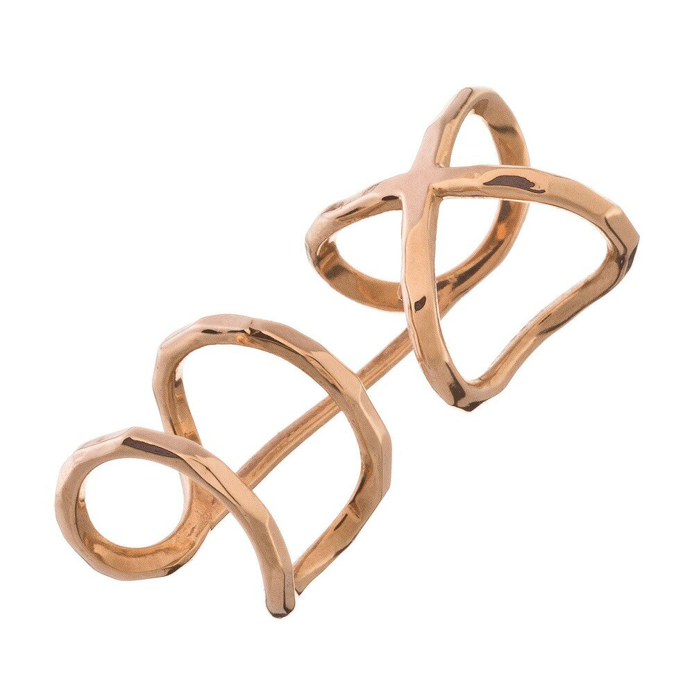 正面から見ると円と四角風デザイン、脇から見ると2連リングとエックスに見えるトリッキーなデザイン。