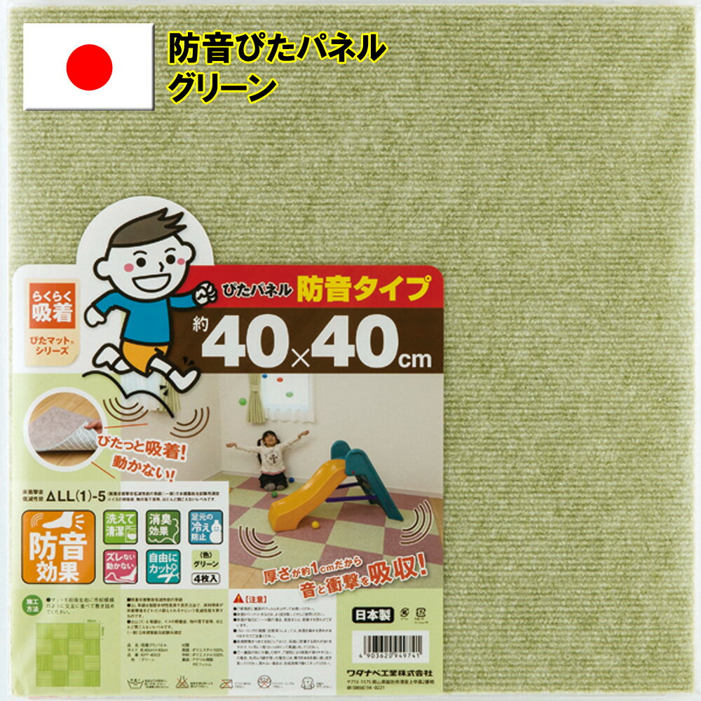 【ワタナベ工業吸着マット】滑り止め防音吸着ぴたパネルグリーン約40cmx40cm(KPP-4003)(4枚入)防音効果、消臭効果【送料無料】